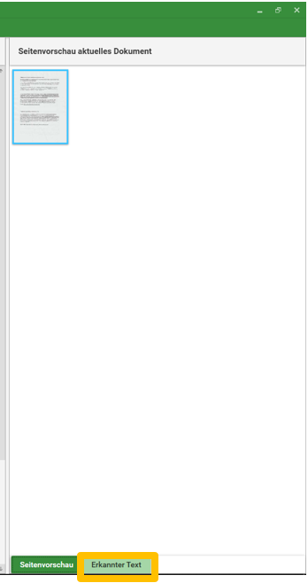 Nachdem Sie das Dokument gescannt / importiert haben, wählen Sie unten rechts im Bild den Punkt "Erkannter Text" aus: